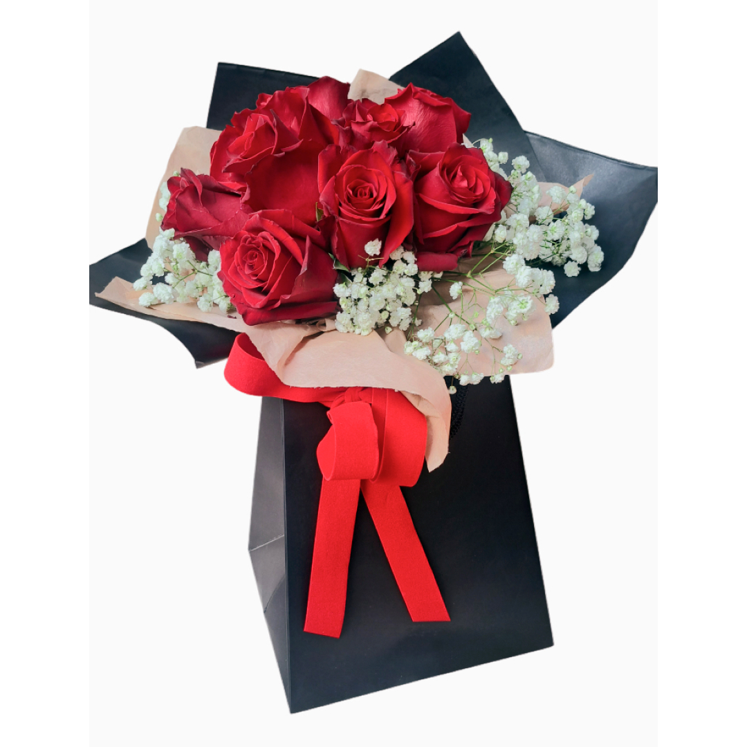 Chapeleira composta por rosas vermelhas. Produto lançado especialmente para o Dia dos Namorados, em sacos reutilizáveis e elegantes.
