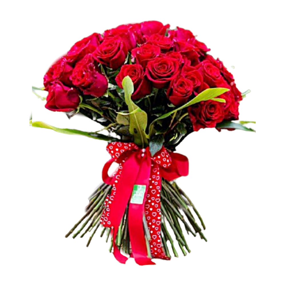 O bouquet inclui rosas vermelhas. A imagem é meramente ilustrativa.